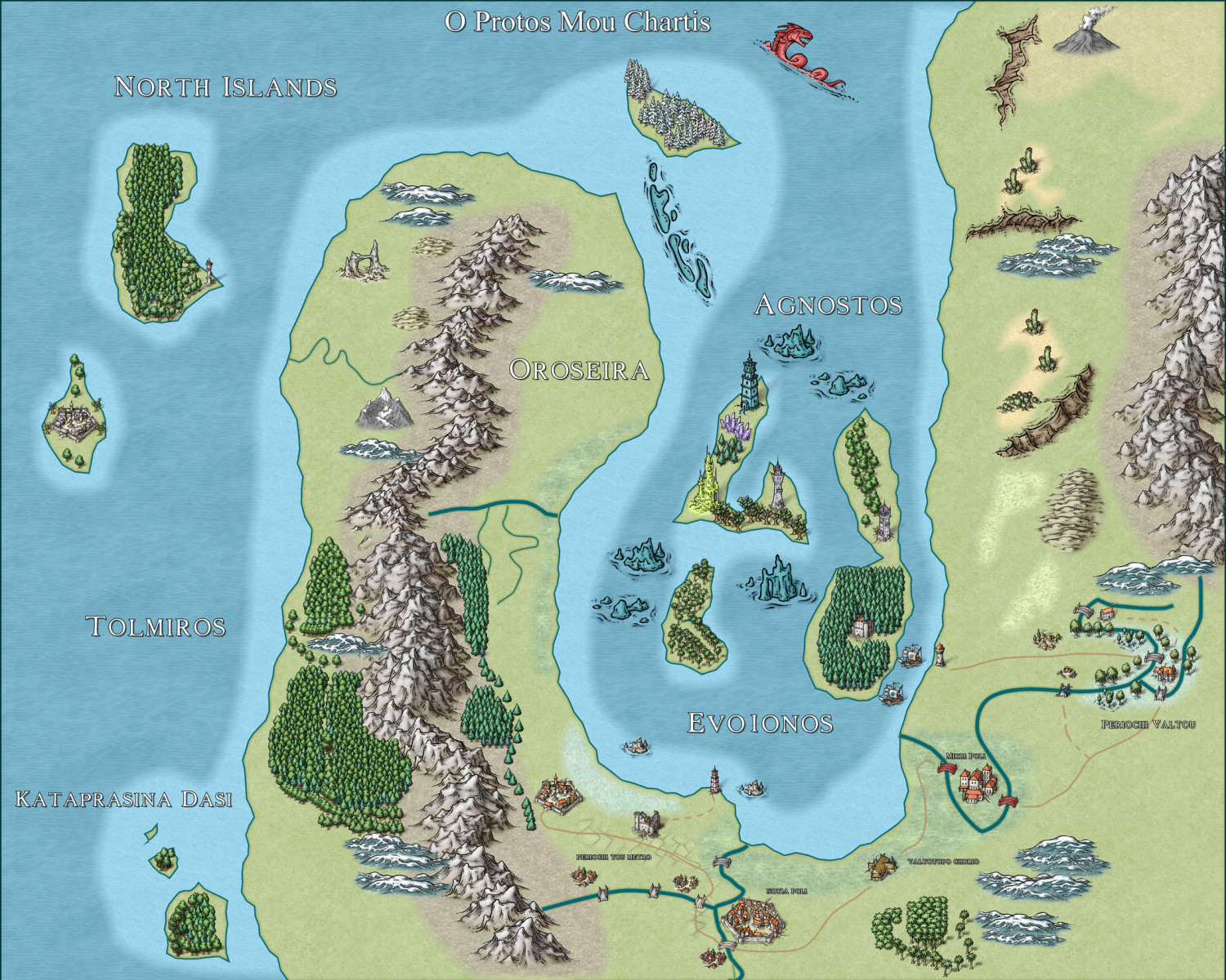 -Did not really pay much attention to the positioning of certain symbols similar to the chasm I mentioned in my first bullet point, the sandbar in the northernmost part of Oroseira, for example.