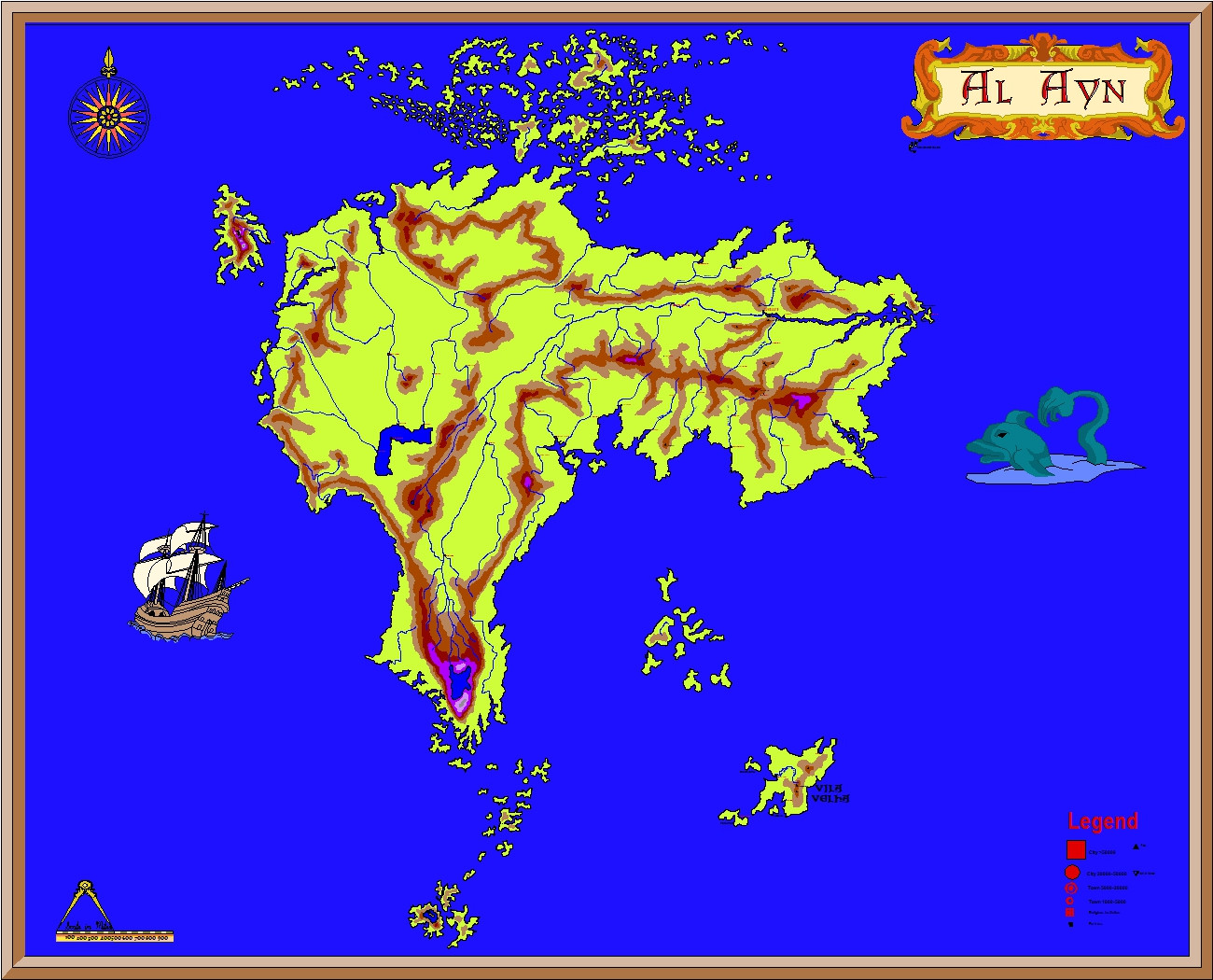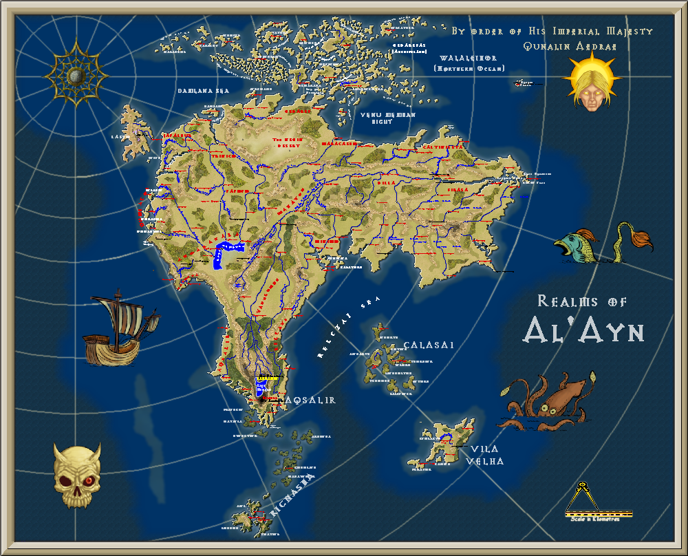 Anyway, this is the Google map of Phillip Island, and the first map I ever did (by hand) of the fantasy land of Al'Ayn - again for a book I will never write. And also, the third map is the newer version made when I got CC2, then the fourth when I got CC3+.