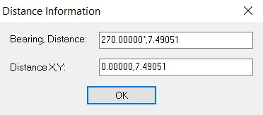 One final piece of weirdness I only found an explanation for after consultations with Loopysue and, indirectly, Remy Monsen. It's been a very long while since I mapped using the Mike Schley Dungeon SS4 style. When I came to draw the Level Thirteen map, as usual, I imported a JPG version of the hand-redrawn dice design as a base to work from in CC3+. I always check the sizing of that, and adjust it when done if needed, using the drop-down Info menu's Distance command, measuring the separation of the graph-paper grid lines using the ortho setting. Ordinarily, that calls up an information panel that looks something like this (I'm just picking random points here to demonstrate):