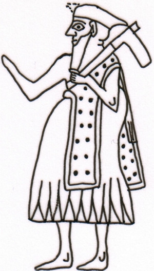 This is the Mari warrior, a scan of the hand-drawn original on tracing film for the final published version: