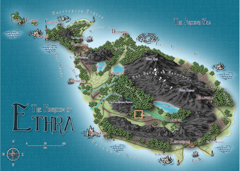 Returning to Doriant for my next Atlas maps, this time I was heading for somewhere on Ethra, the huge island in the great, almost-landlocked, southwestern sea there: