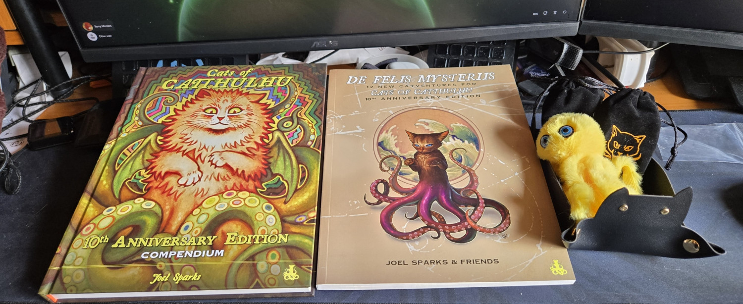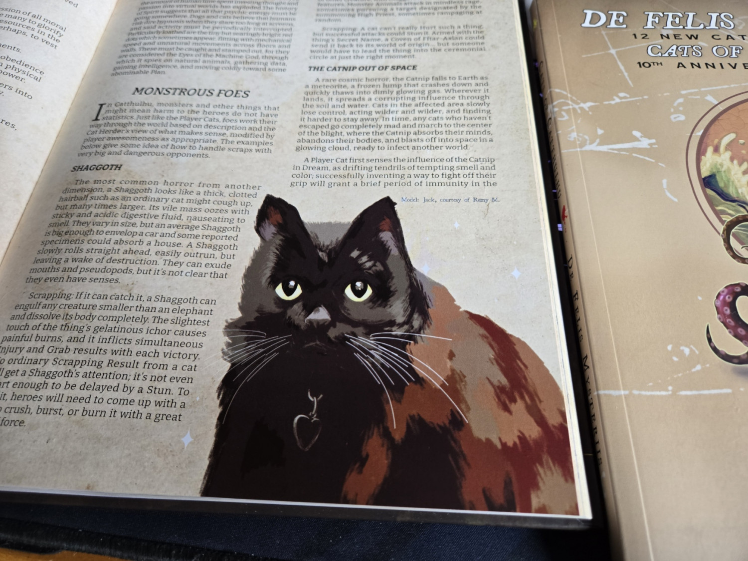 Yup, that's my cat Jack, ready for adventure in the world of Catthulhu. So, not only do he find his way into my livestreams and meetings, but he is now in an actual published RPG book.