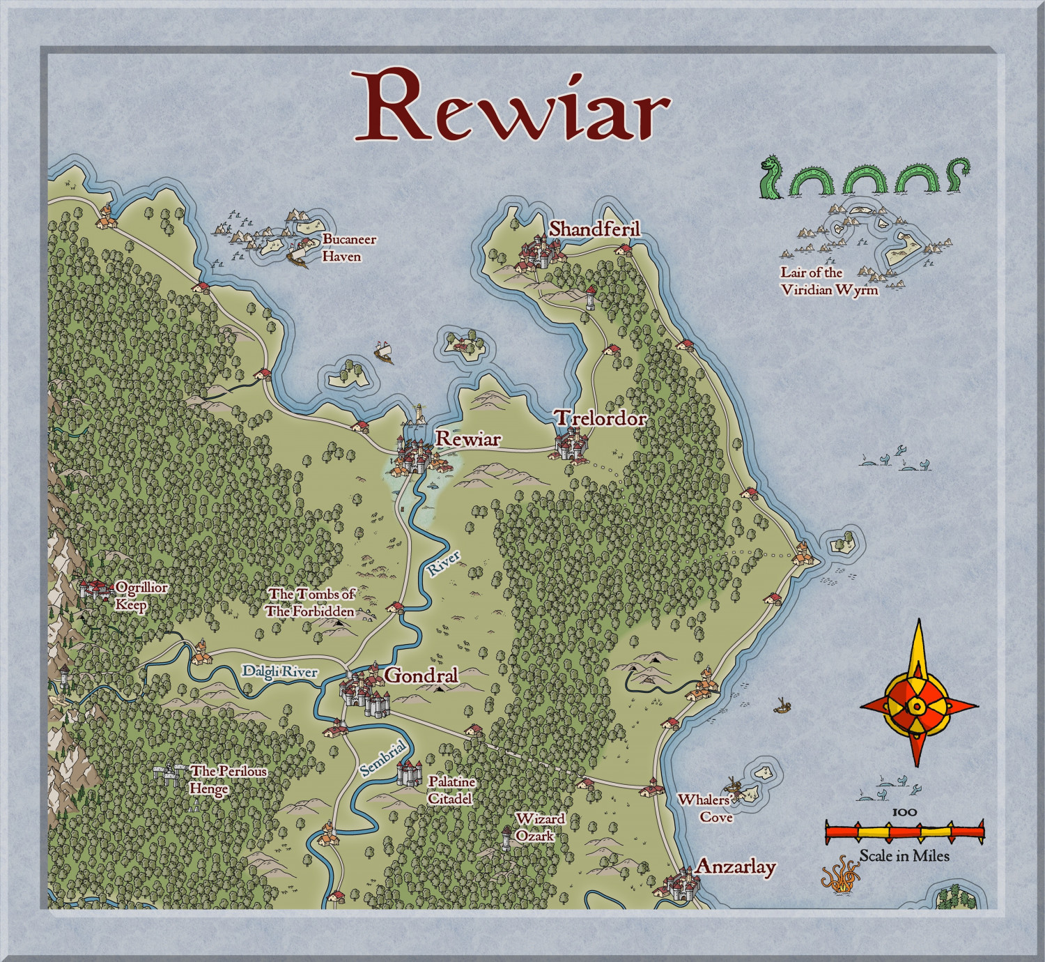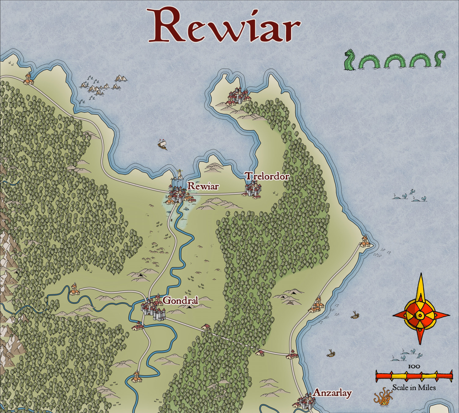 Here is the beginning of the region of Rewiar on the Berenur Continent, using the new style, which I think looks so gorgeous. @Ralf - more structure and marine symbols, PLEASE.