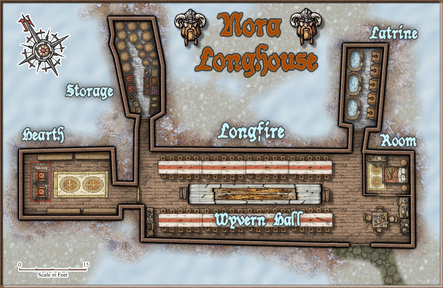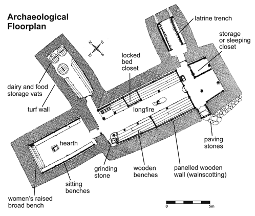 Bonus track! Based on a floor plan from an archaeological dig, I tried to reproduce the size and layout of the rooms similarly to create Nora's Longhouse.