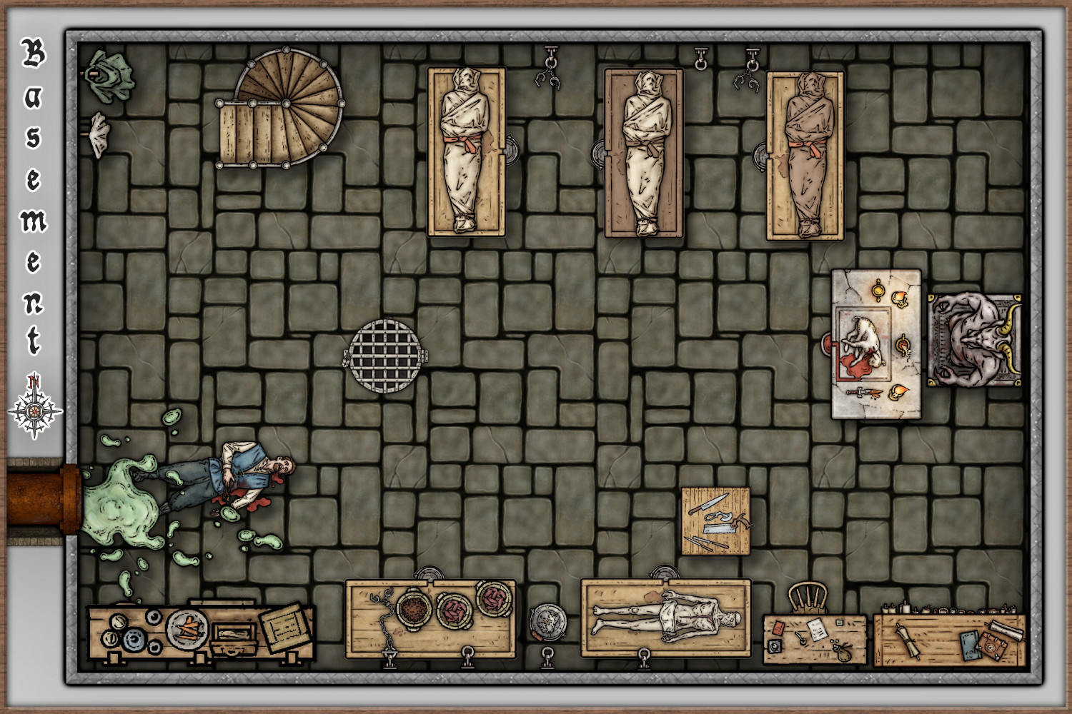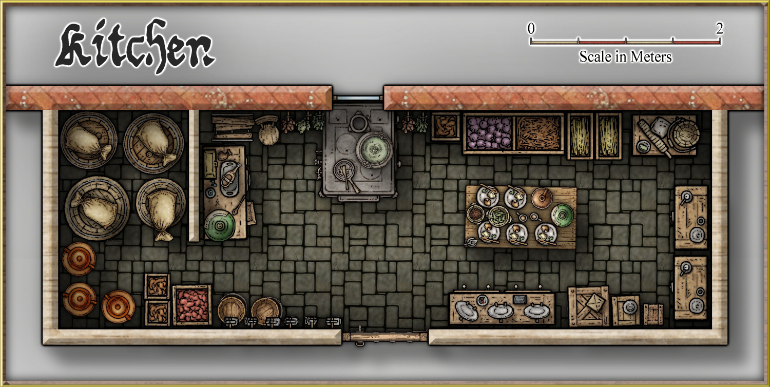 Hi @Ricko The Kitchen had a door in the north wall. And the entrance to the basement is the trapdoor just outside this door.