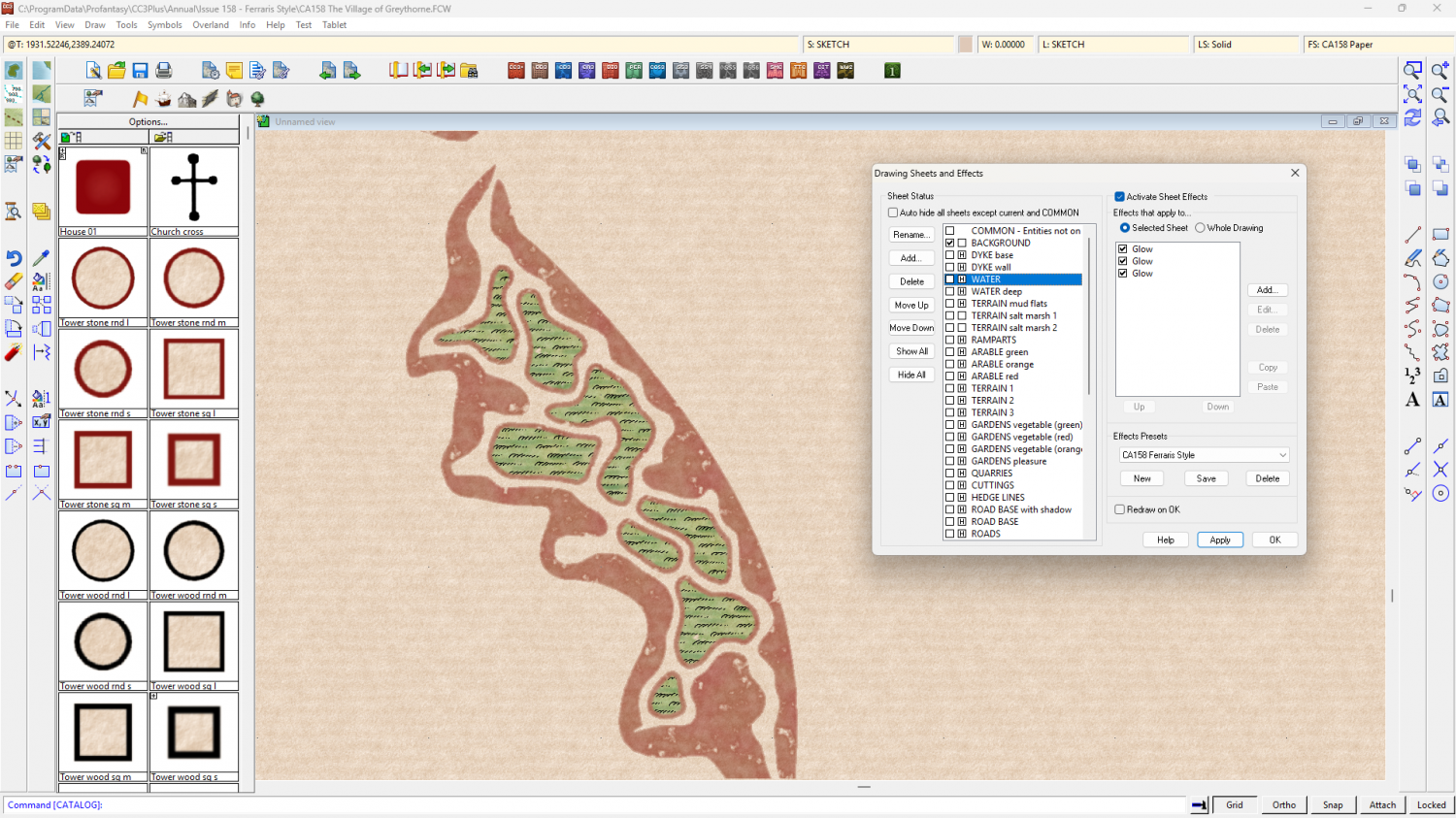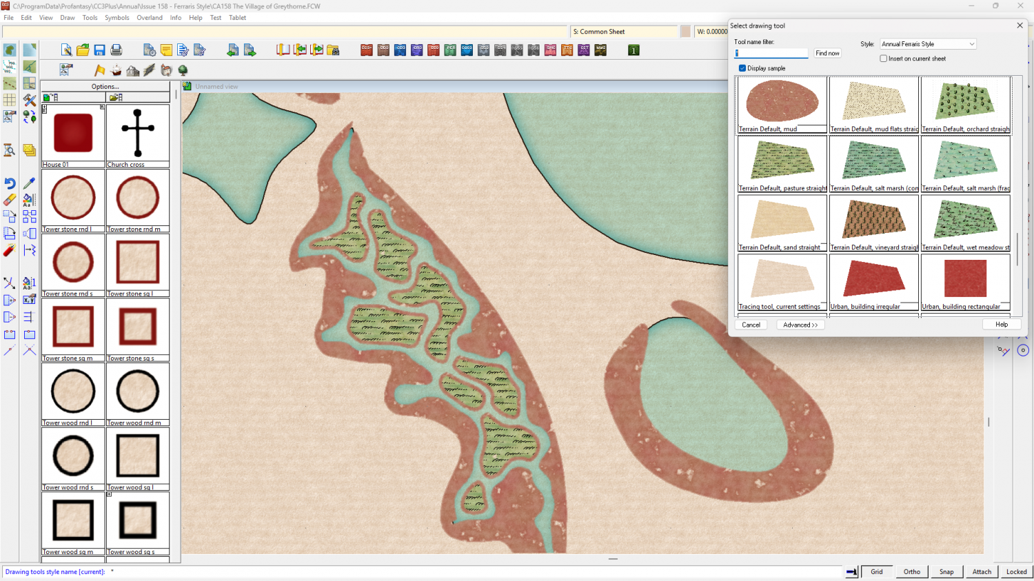 Then the islands were drawn last, using the Terrain Default, marsh island drawing tool.
