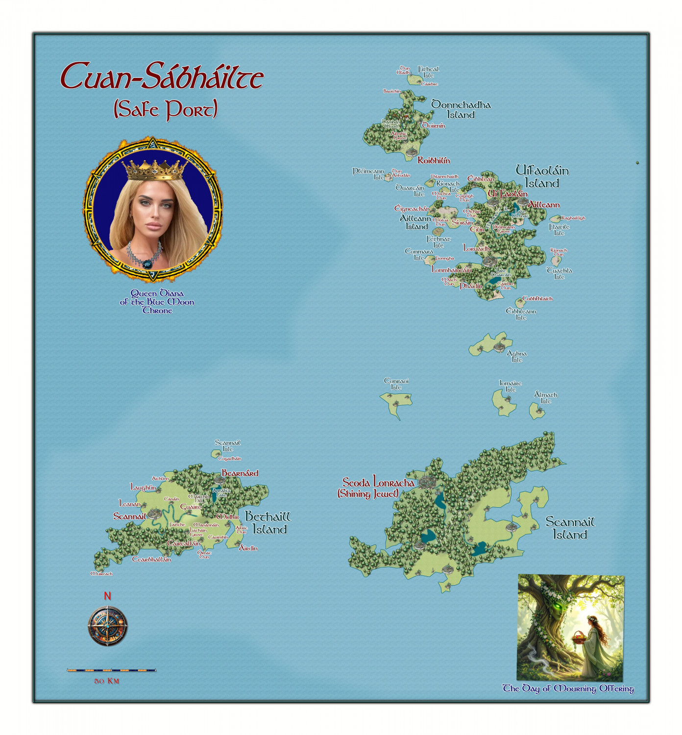 The final of the five Elven Queendoms in the Qentepa Archipelago. These five will be the basis for a RPG Game-aid I am writing.