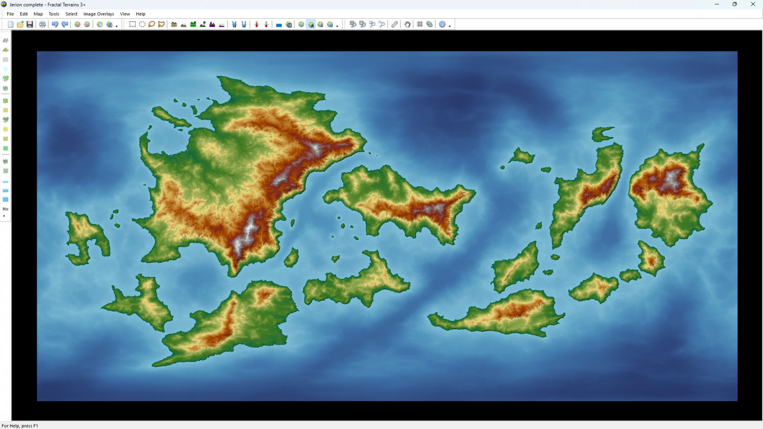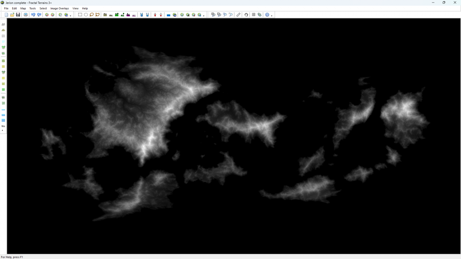 Process the height as desired (select land, fill basins, incise flow, precipiton erosion, fill basins, resample to larger size, run processing loop above until you get the desired output size). Save as the MDR file to output to FT