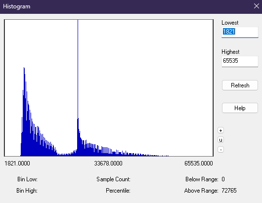 In my histogram, the values did not range from 0 to 255 at all, but from 1,800 to 65,000.