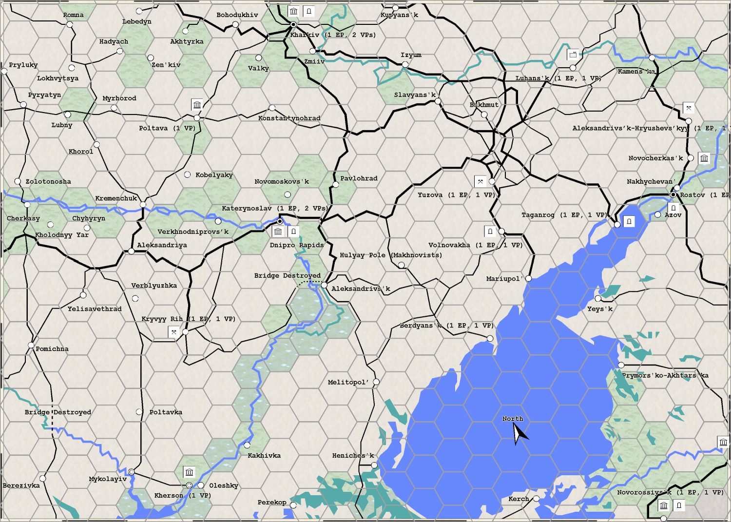 I think it's too hard to distinguish navigable from non-navigable water, and broken from rough terrain. I am going to need to add hex numbers again. I would prefer not to have the large tree icons.