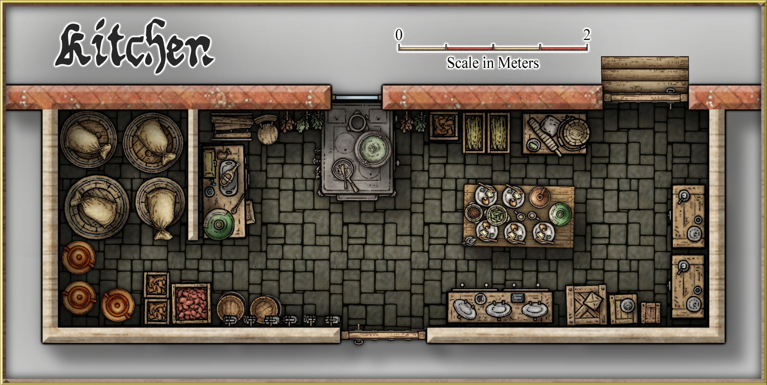 Hi @Ricko The Kitchen had a door in the north wall. And the entrance to the basement is the trapdoor just outside this door.