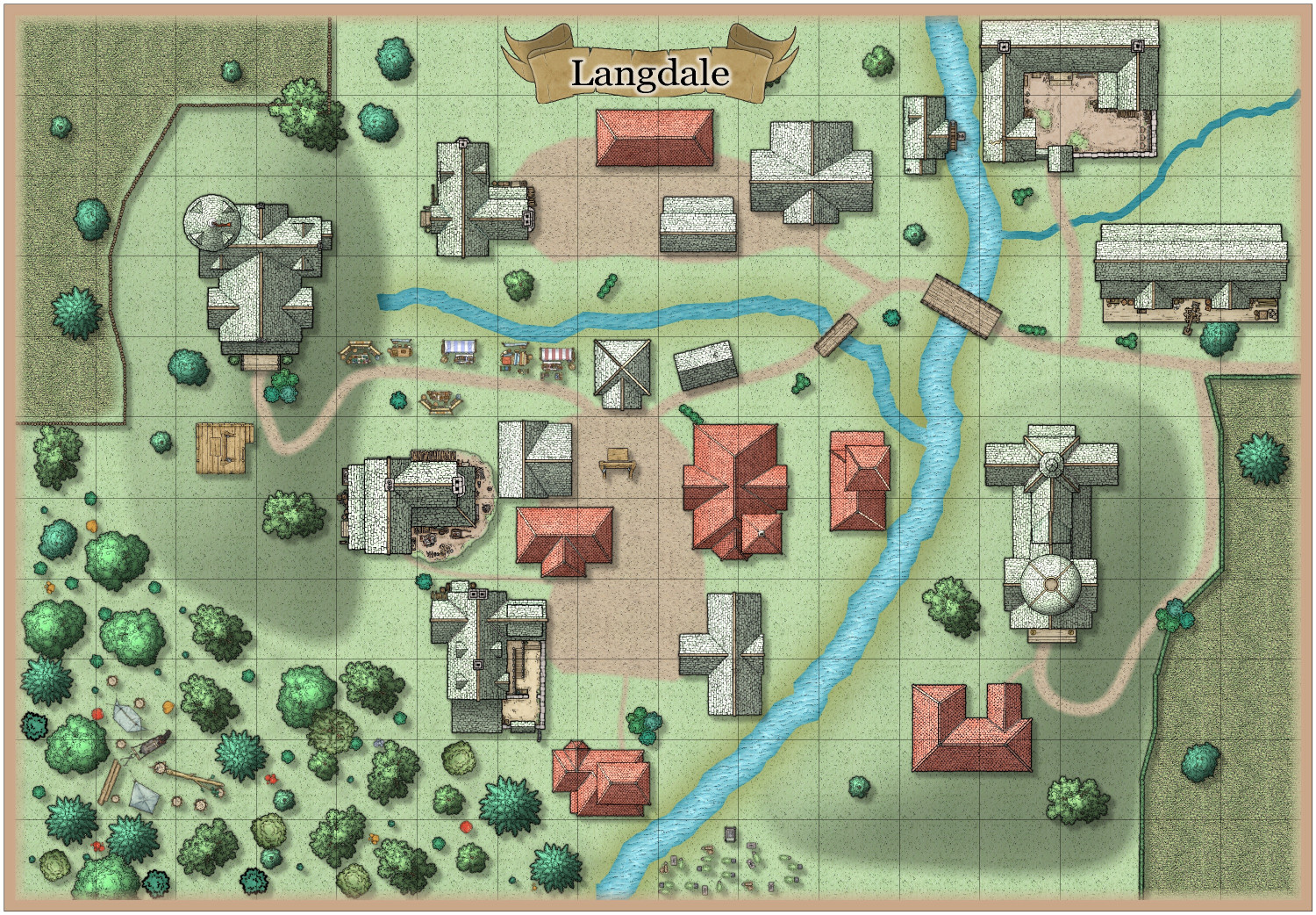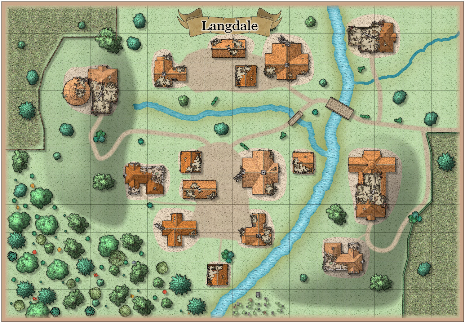 As a little something I’m happy to share with you, here’s the reconstruction of Langdale. Here’s the story: during one of my sessions, my players saved the village of Langdale from an ongoing raid. After the rescue, they had the chance to rebuild it. To help them visualize the project, I created and printed a first map called “Pillaged Langdale”. Then, I designed a second map, “Rebuilt Langdale”, by cutting out the renovated buildings according to their exact locations (respecting each building’s grid space). This allowed me to create small tiles that the players could place in the right spots to represent the reconstruction. The experience was very well received by my players!