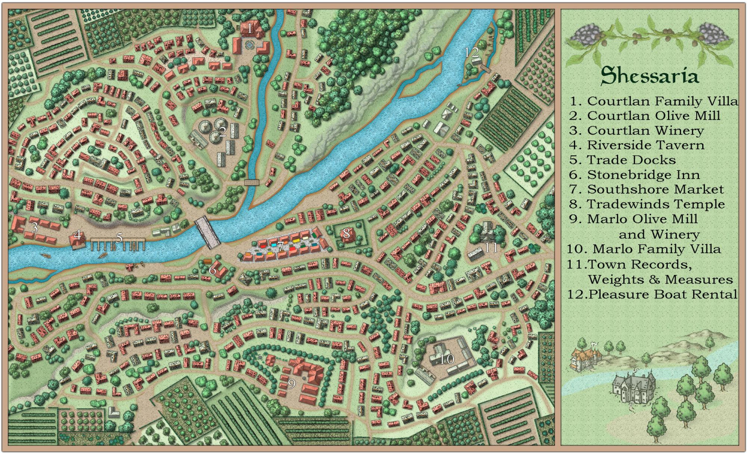 The farm compound, the walled in one on the small bluff. The market, dockside building, and the northern villa.