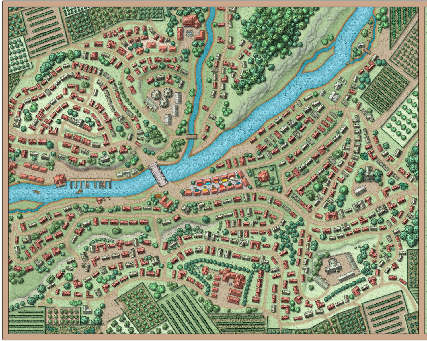 City is finished. All that remains is to number and label points of interest. I've forgotten what I had intended for many of them, so I'll have to wrack my brain to either remember, or come up with new ideas.