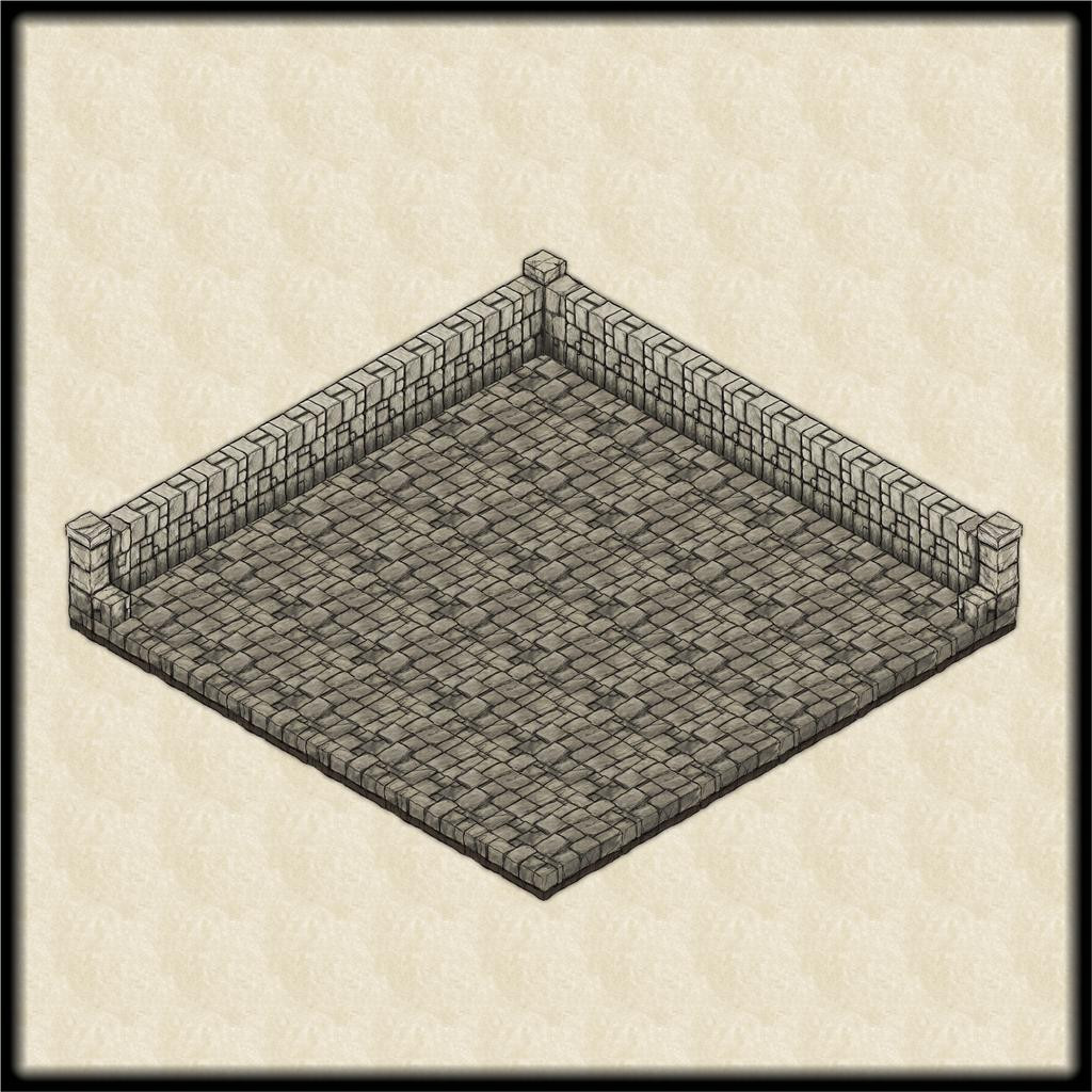 I'd worked out in advance that the surface level of the Tower needed to be about 60 feet square, based on the first part of the subterranean map, with its square entrance chamber, as noted previously in this topic, so I set a size a bit bigger than that as a square map border for this initial trial. Naturally, this is very basic as a drawing, just a floor area comprising 10-foot-square symbols, plus some 5-foot wall pieces and corners. The front walls have been left off here, as this had already given me the information I needed on the general mapping area required.