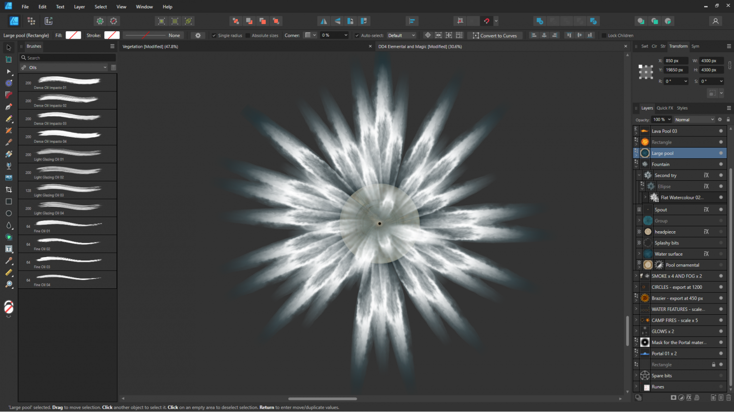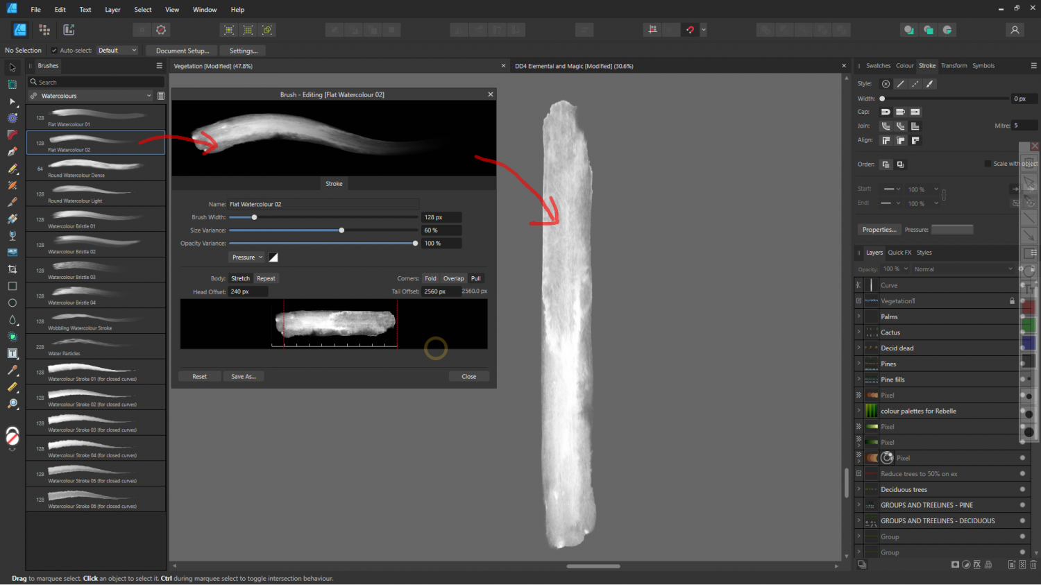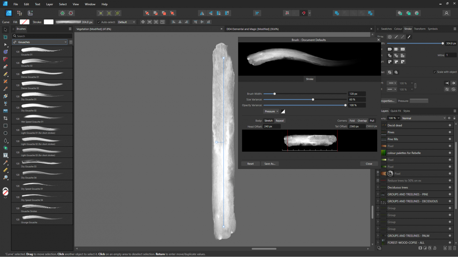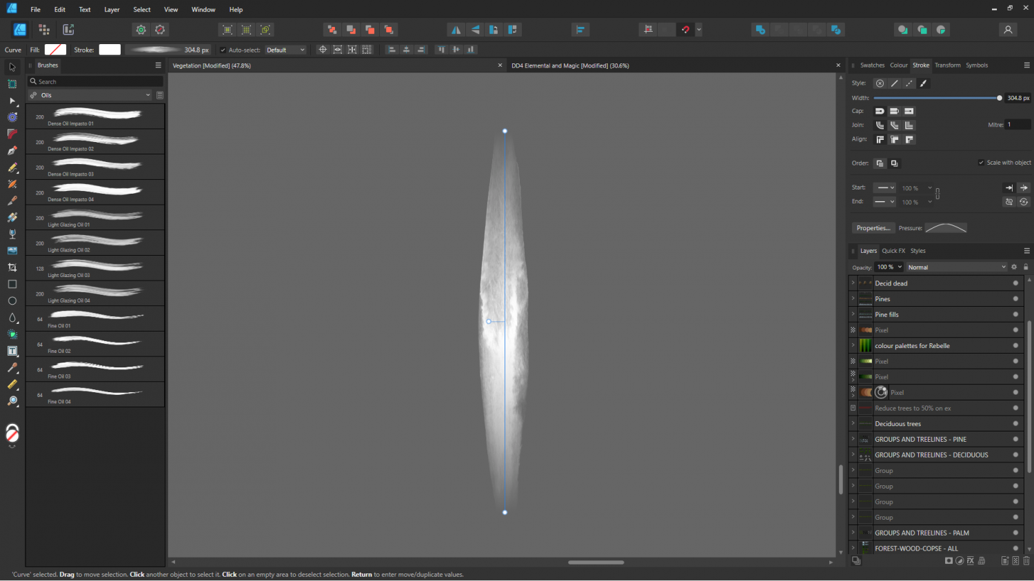 If you are lucky enough to own Affinity V1 or V2 (or if you rent PS or any other advanced image editor), the app has a selection of oil paint brushes that can be used as vector lines like this