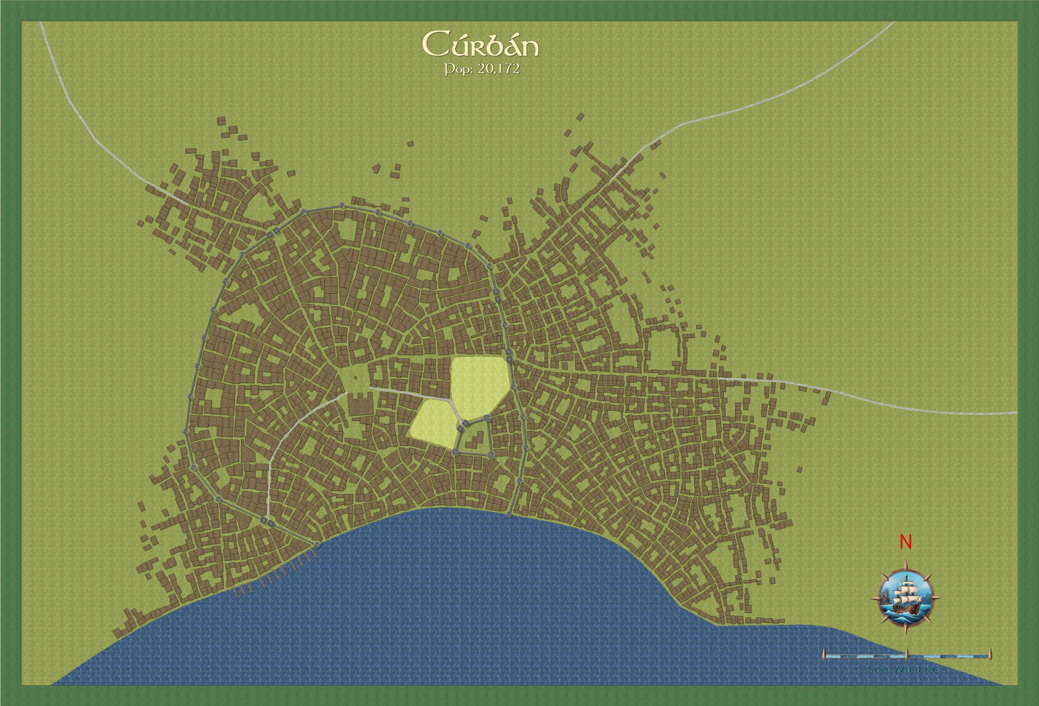 This is the capital of the small Elven Queendom of Aillte-Lonracha, starting with the Watabou revised annual. I will do a bit of demolition etc, and also use symbols for the buildings from another annual (not decided which yet).