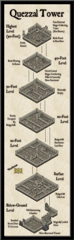 Map notes expanding on some of the place-names, again largely based on what the cards came up with, will be in the final Atlas version of the map, and also much as last time, the cards inspired thoughts and details beyond what I'd expected, which of course is their whole point. As for where the dungeon layout might be placed, there wasn't a shortage of possibilities. Ultimately, Windy Tower, northwest of the map's centre, won out, as we'll see next time.