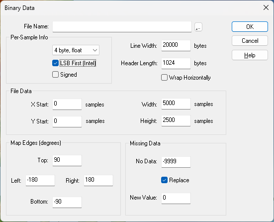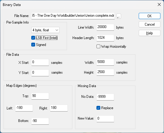Clicking OK takes you back to the first Binary Data dialog, but with your chosen MDR file named across the middle.