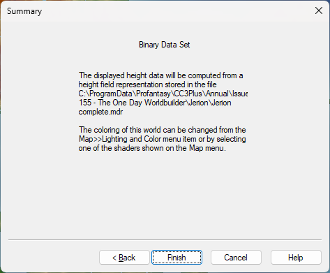 Pick your MDR file and click Open. I have used the example MDR file in CA155, which if you have that annual can be found here: ProgramData\Profantasy\CC3Plus\Annual\Issue 155 - The One Day Worldbuilder\Jerion\Jerion complete.mdr